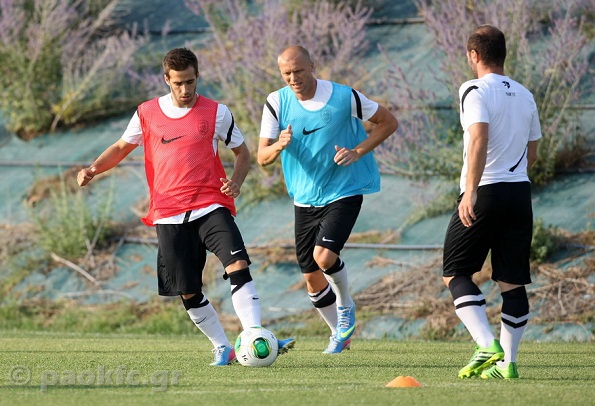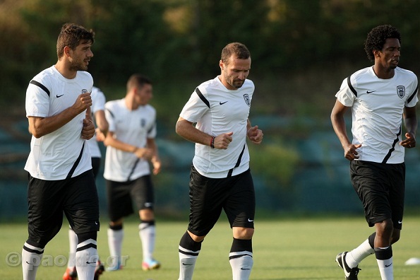 В понедельник вечером состоялась открытая тренировка команды, которая прошла в Месимврии.Для части игроков она будет единственной перед встречей с Ниццей, к сожалению, не с городом, а с одноименной командой, которая во вторник проэкзаменует готовность греческой команды к матчам с Металлистом. Кроме Лопеса, который восстанавливается после травмы, все остальные занимались в общем режиме. А ряд игроков, Спиропулос, Олисе, Лукас и Нецид утром прошли эргометрический тест.После обязательной разминки последовали упражнения на технику и игра на контроль мяча 8 против 4.Большая часть тренировки была посвящена завершению стандартных положений, в основном навесов с флангов, по схеме трех нападающих против одного защитника. Хуб Стевенс требовал забивать как можно больше голов, но без колебаний прервал процесс, чтобы потребовать больше концентрации и результативности.